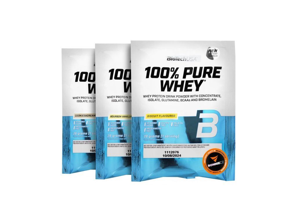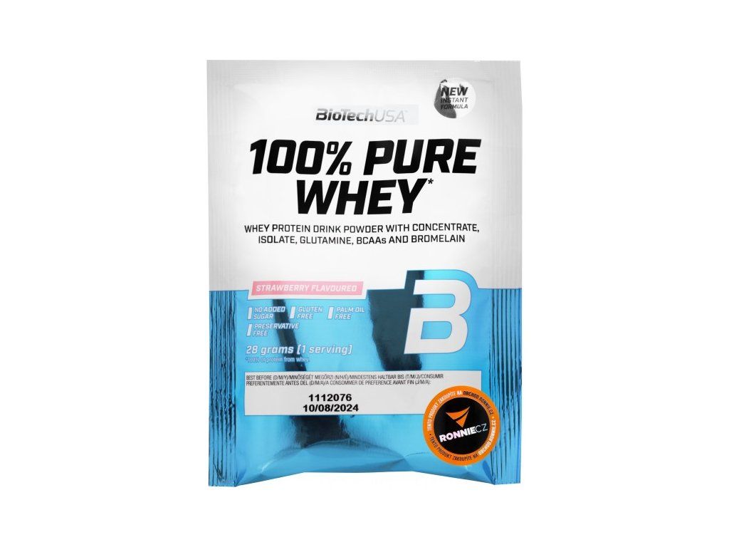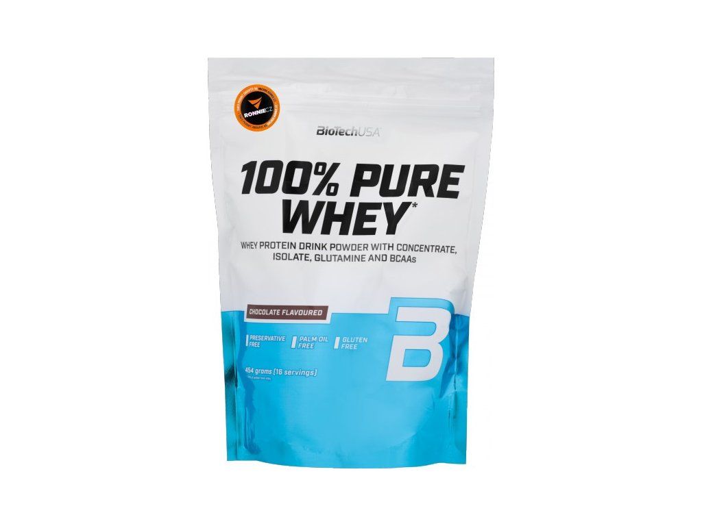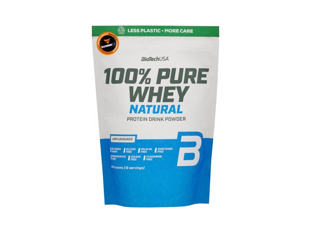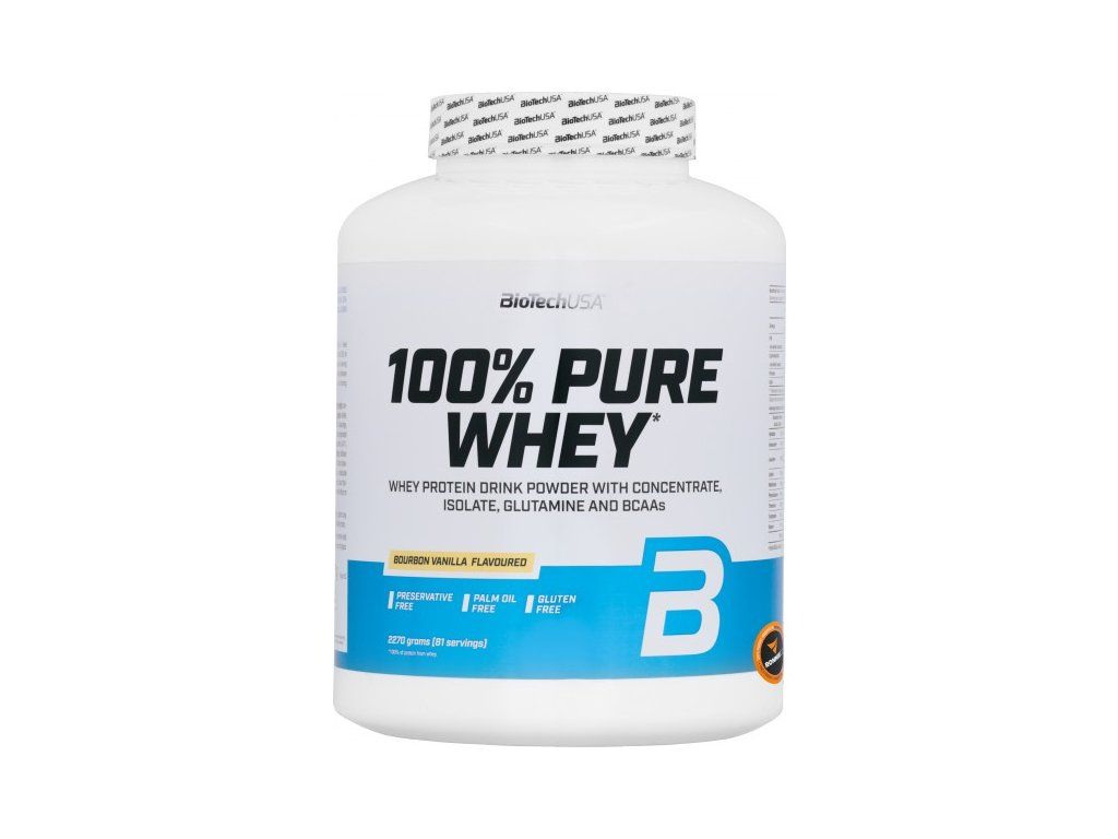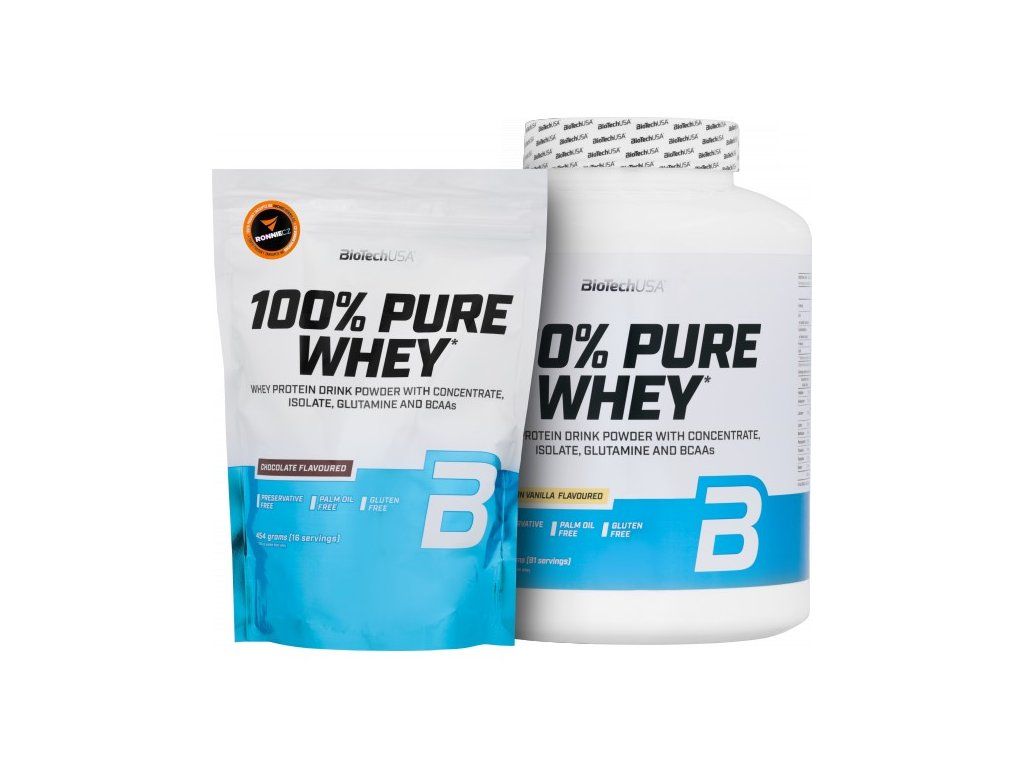 100 % Pure Whey je syrovátkový protein s vysokým obsahem bílkovin (až 76 %), BCAA, s minimálním obsahem tuku a sacharidů bez přidaného cukru, neobsahuje lepek ani aspartam. Díky šetrné výrobní technologii je v tomto produktu zachováno ideální aminokyselinové spektrum s vysokou biologickou hodnotou.