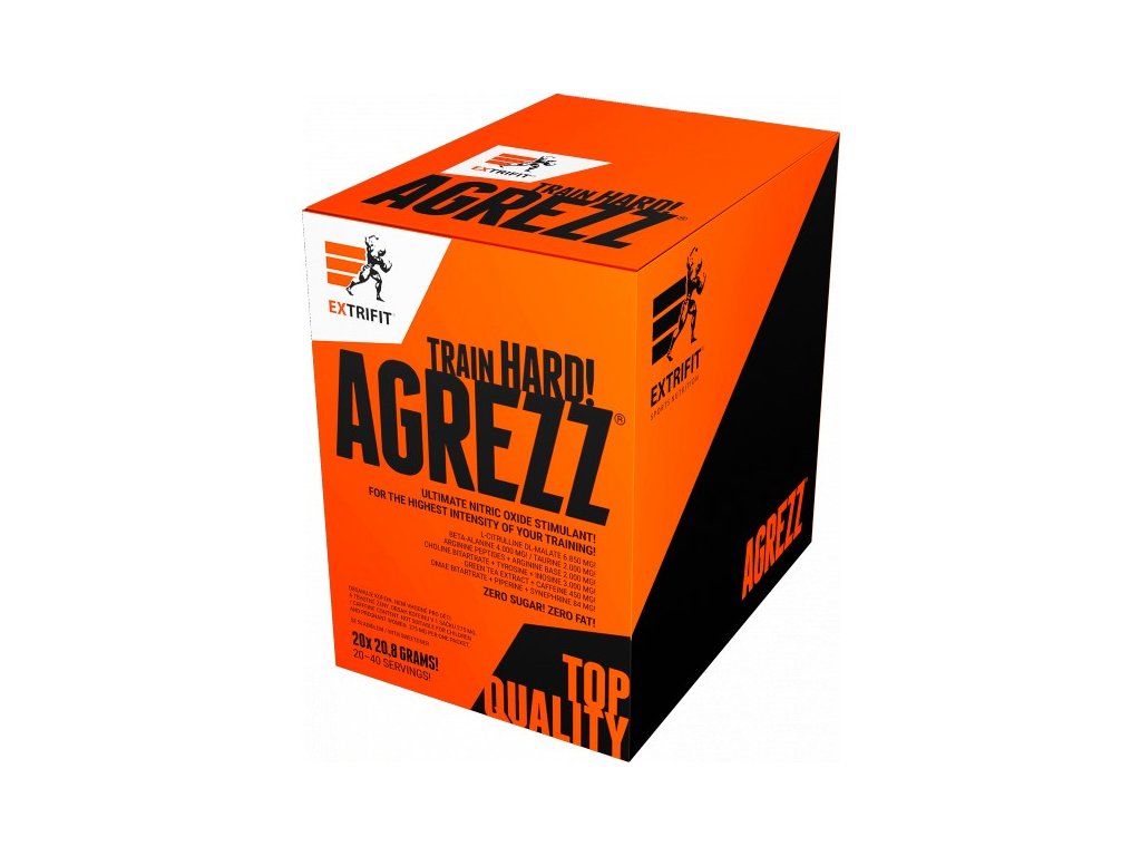 Agrezz je profesionální předtréninkový produkt pro nejnáročnější uživatele. Obsažené účinné látky vyhledávají nejčastěji sportovci, kteří usilují o maximální koncentraci, prokrvení svalů a zvýšení tréninkové intenzity a vytrvalostní kapacity. Díky obsaženým extraktům je produkt vhodný i pro trénink v rýsovací fázi. Efekt tohoto přípravku je dán unikátní kombinací stimulantů produkce NO (oxidu dusnatého) citrulinu, beta alaninu a argininu, stimulačních látek kofeinu a taurinu, dále extraktu z plodů pomerančovníku hořkého (synefrinu), ze zeleného čaje, extraktu z černého pepře (piperinu), cholinu a tyrosinu.