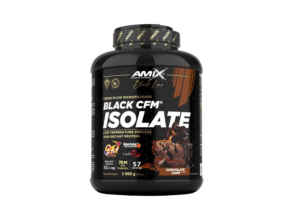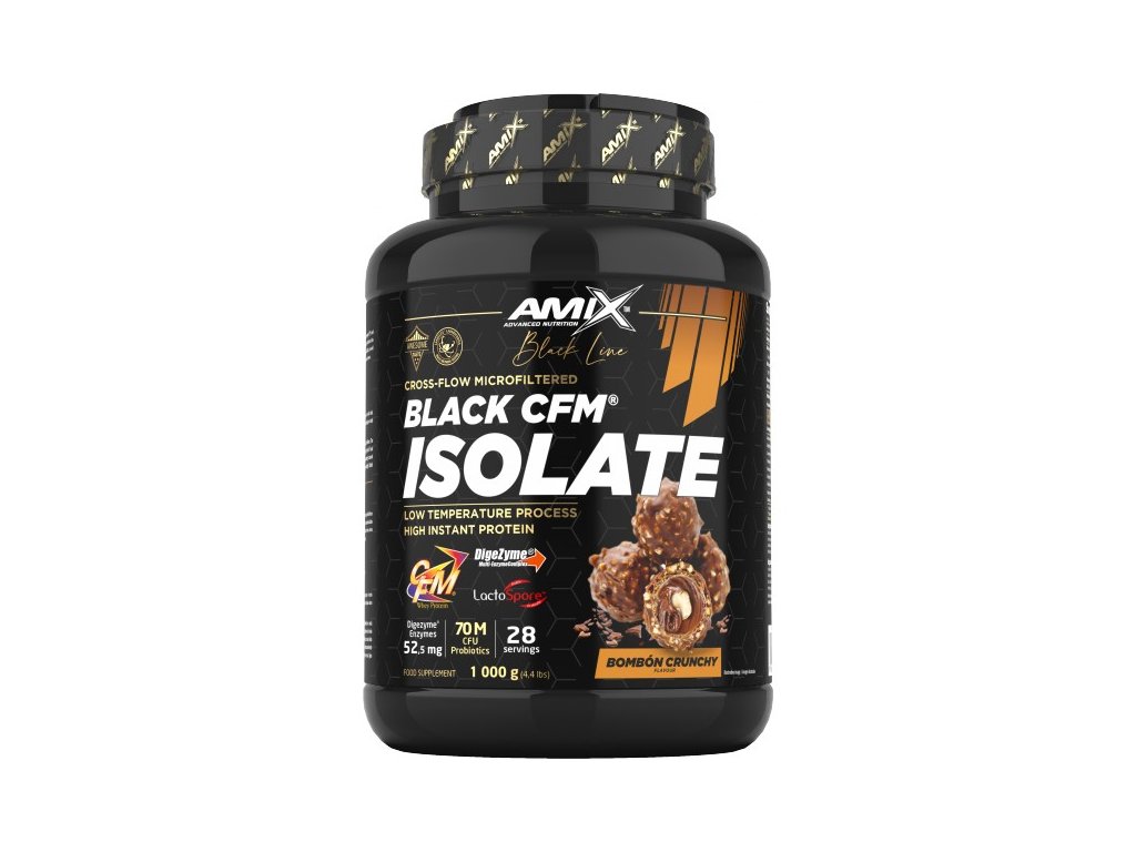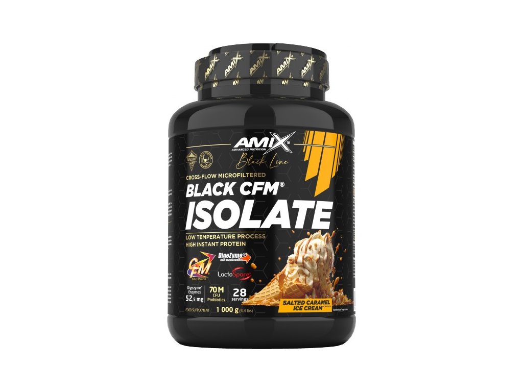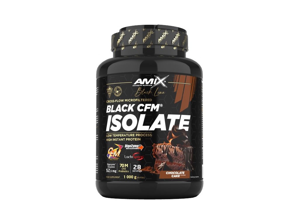 Amix™ Black CFM Isolate z řady Black Line je syrovátkový bílkovinný izolát prémiové kvality, obohacený o probiotika (LactoSpore®) a enzymový komplex DigeZyme®. Díky tomu je Black CFM® Isolate opravdu rychlý a lehce stravitelný. Poskytuje celé spektrum aminokyselin přirozeně se vyskytujících v syrovátkovém proteinu, včetně nejvyšší koncentrace BCAA a dalších esenciálních aminokyselin. Protein přispívá k růstu svalové hmoty k udržení svalové hmoty.