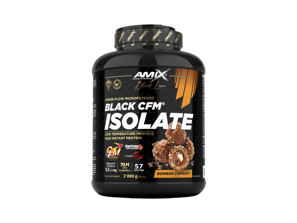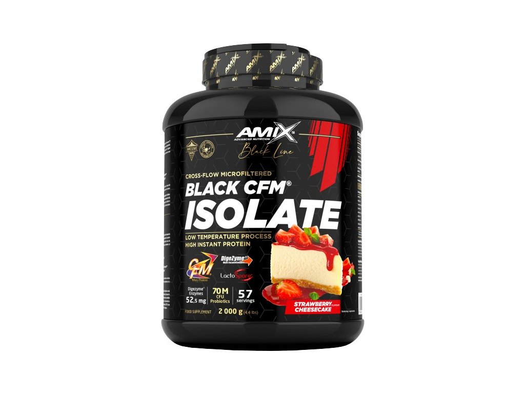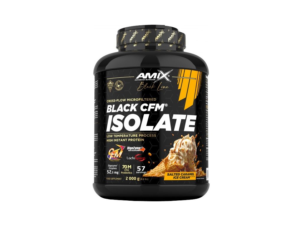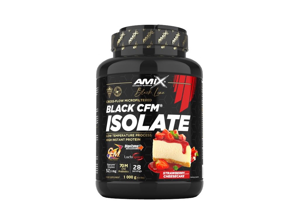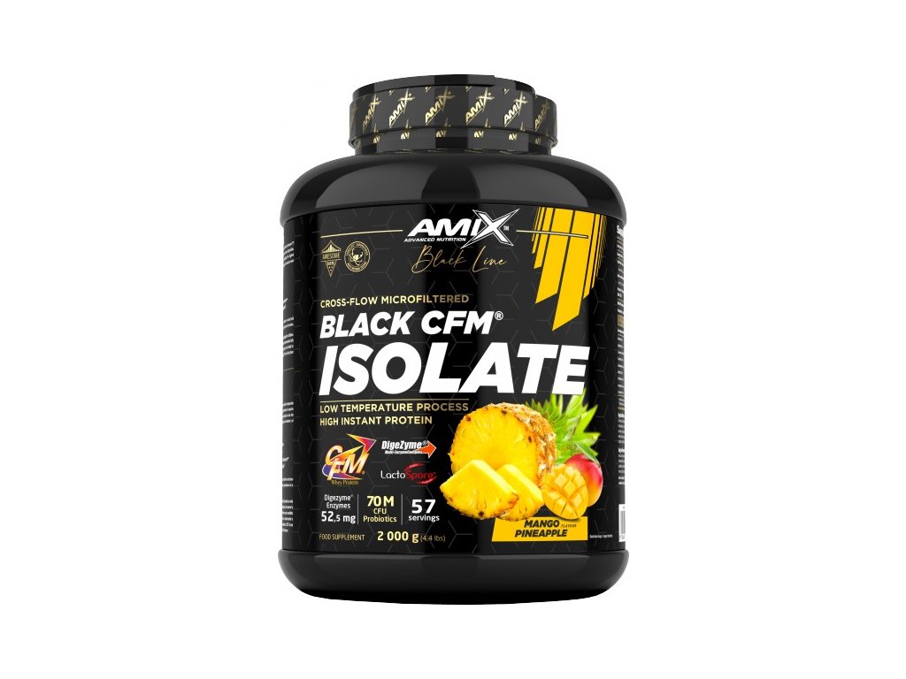 Amix™ Black CFM Isolate z řady Black Line je syrovátkový bílkovinný izolát prémiové kvality, obohacený o probiotika (LactoSpore®) a enzymový komplex DigeZyme®. Díky tomu je Black CFM® Isolate opravdu rychlý a lehce stravitelný. Poskytuje celé spektrum aminokyselin přirozeně se vyskytujících v syrovátkovém proteinu, včetně nejvyšší koncentrace BCAA a dalších esenciálních aminokyselin. Protein přispívá k růstu svalové hmoty k udržení svalové hmoty.