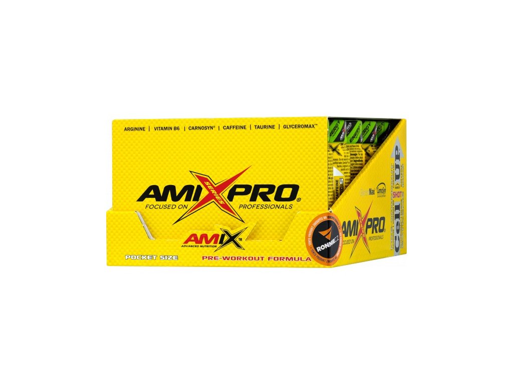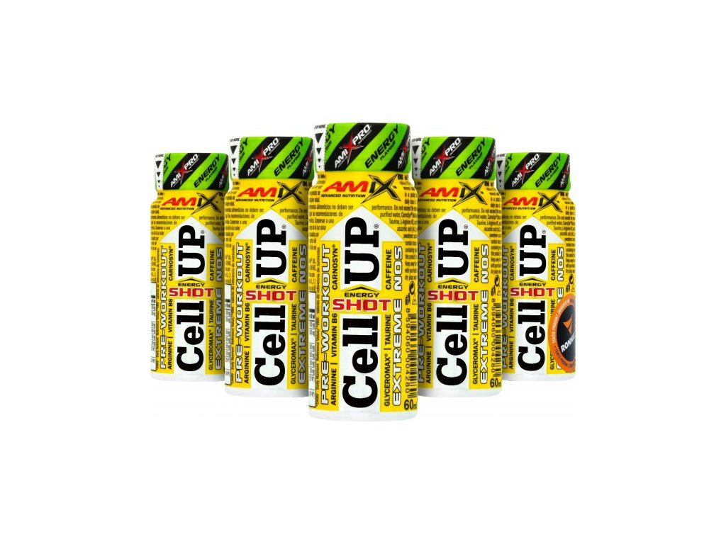 CellUp Shot je unikátní vysoce koncentrovaný předtréninkový doplněk stravy v tekuté formě v kapesním balení ampulí. CellUp® obsahuje patentovanou, vysoce koncentrovanou formu práškového glycerolu a křemíku (GlyceroMax®), dále beta-alanin (CarnoSyn®), taurin, L-arginin HCl, N-acetyl L-tyrosin, kofein a vitamín B6 s vitamínem C. Díky jednotlivým ampulím si jej můžete snadno vzít kamkoli!