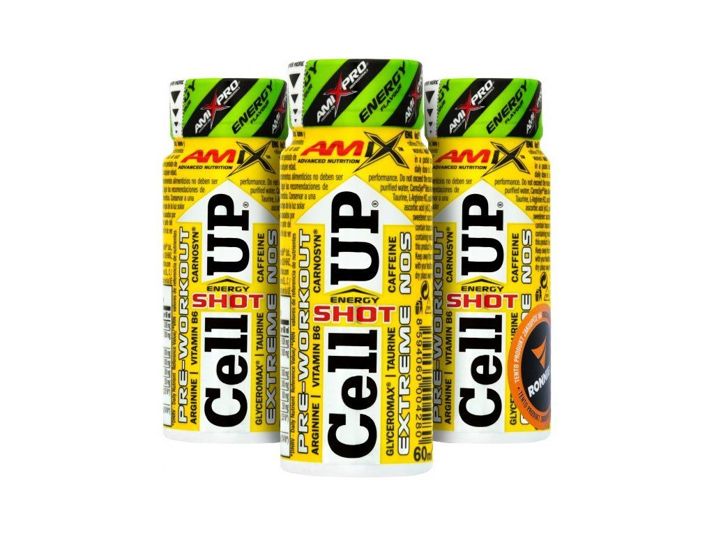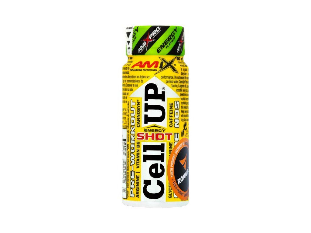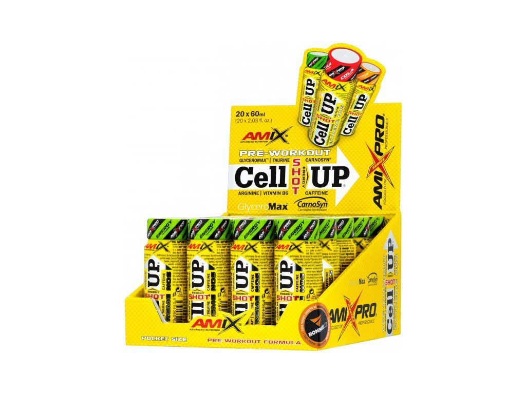CellUp Shot je unikátní vysoce koncentrovaný předtréninkový doplněk stravy v tekuté formě v kapesním balení ampulí. CellUp® obsahuje patentovanou, vysoce koncentrovanou formu práškového glycerolu a křemíku (GlyceroMax®), dále beta-alanin (CarnoSyn®), taurin, L-arginin HCl, N-acetyl L-tyrosin, kofein a vitamín B6 s vitamínem C. Díky jednotlivým ampulím si jej můžete snadno vzít kamkoli!