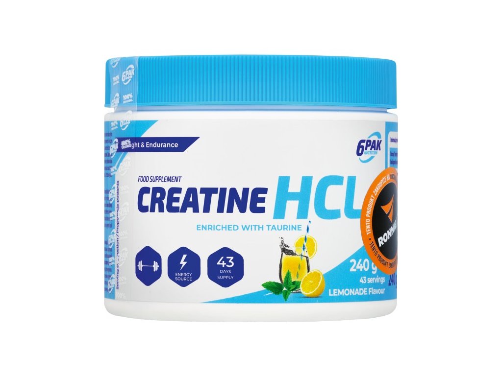 Creatine HCl je považován za účinnější produkt pro nabírání svalové hmoty a síly než klasický kreatin monohydrát. Creatine HCl je doplněk stravy pro zvýšení fyzické výkonnosti při po sobě jdoucích krátkodobých intervalech vysoce intenzivního fyzického výkonu (při dávkování 3 g). Jedna dávka 6Pak Creatine HCl obsahuje 3715 mg kreatinu, což je o něco více, než se doporučuje před intenzivním tréninkem. Celé 240g balení vystačí při doporučeném dávkování na 6 týdnů, poté je doporučována dvoutýdenní přestávka v používání, následně je možné cyklus opakovat.