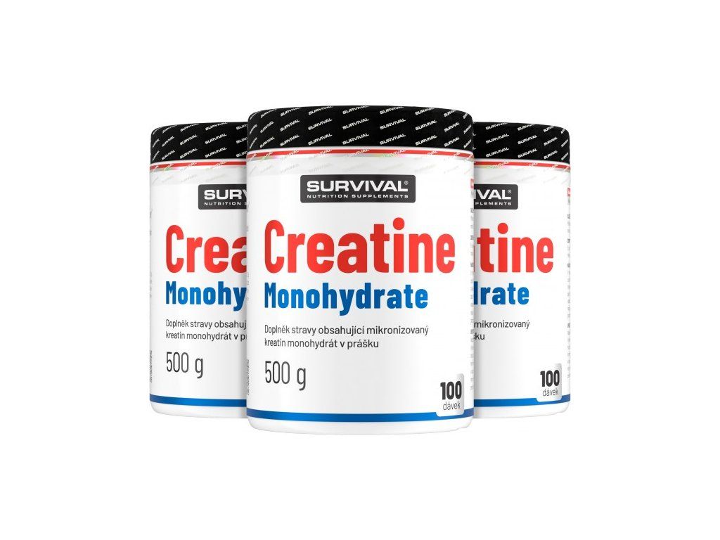 Kreatin zvyšuje fyzickou výkonnost při po sobě jdoucích krátkodobých intervalech vysoce intenzivního fyzického výkonu, příznivého účinku se dosáhne při dávkování od 3 g kreatinu denně. Creatine Monohydrate značky Survival je vysoce čistou mikronizovanou formou kreatinu monohydrátu bez obsahu jakýchkoliv jiných přísad. Mikronizovaná forma umožní snadnou přípravu, rychlou rozpustnost a maximální využitelnost v lidském organismu.