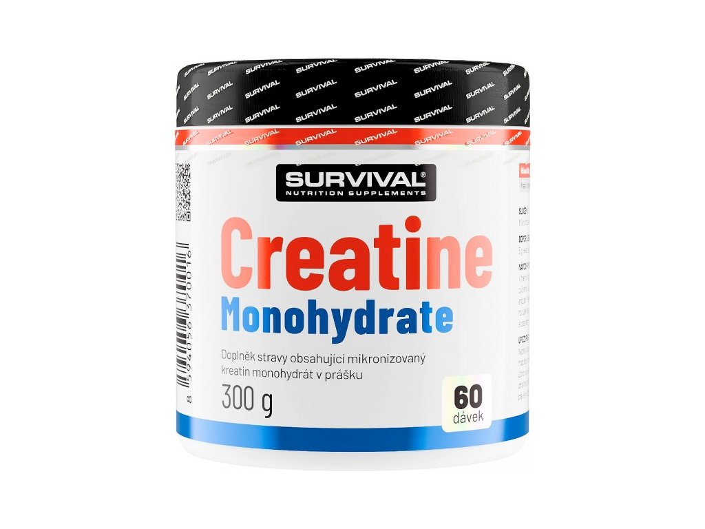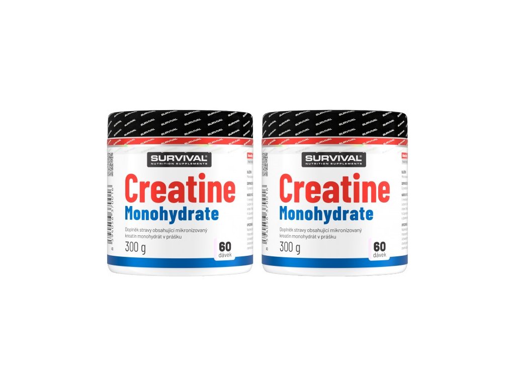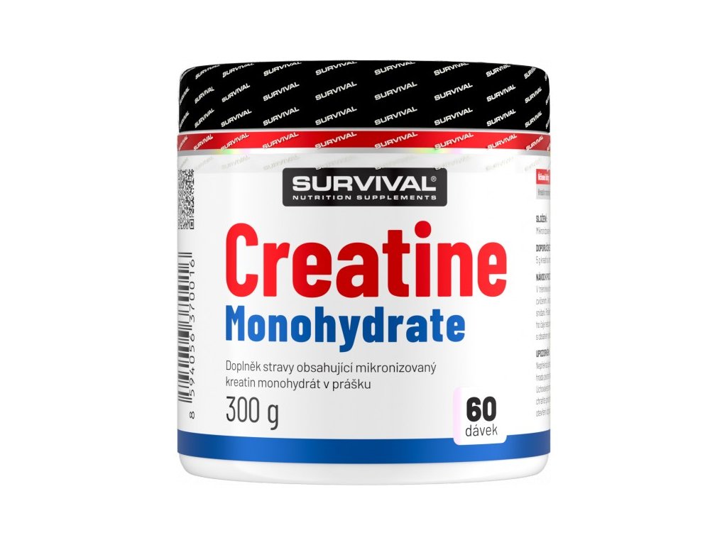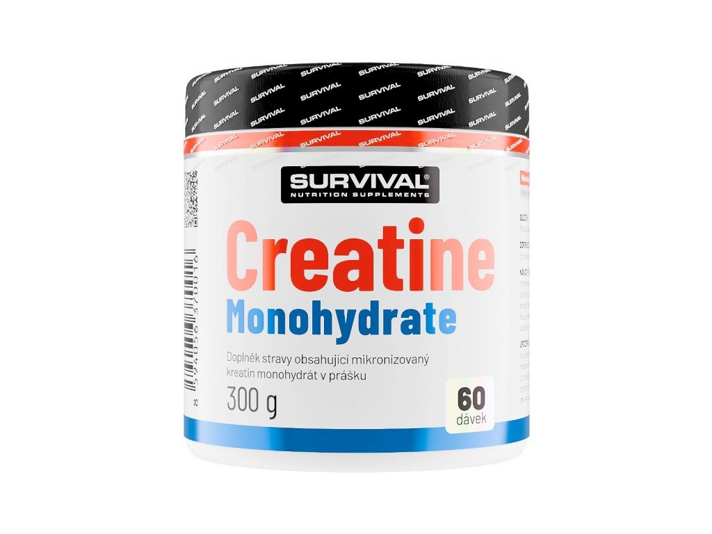 Kreatin zvyšuje fyzickou výkonnost při po sobě jdoucích krátkodobých intervalech vysoce intenzivního fyzického výkonu, příznivého účinku se dosáhne při dávkování od 3 g kreatinu denně. Creatine Monohydrate značky Survival je vysoce čistou mikronizovanou formou kreatinu monohydrátu bez obsahu jakýchkoliv jiných přísad. Mikronizovaná forma umožní snadnou přípravu, rychlou rozpustnost a maximální využitelnost v lidském organismu.