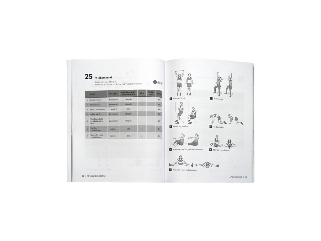 Sestavy jsou v délce od 10 do 45 minut a mají různé úrovně obtížnosti. Jsou doplněny názornými ilustracemi, jak cviky provádět, a v přehledném tabulkovém provedení jsou stanoveny doba cvičení nebo počet opakování. Kniha je součástí bestsellerové série „50 tréninkových sestav“, z níž už v českém překladu vyšlo Cvičení s vlastní vahou bez nářadí (Grada, 2024) a k vydání se připravuje též Pilates (Grada, 2025) a Cvičení pro pozdní začátečníky (Grada, 2026).