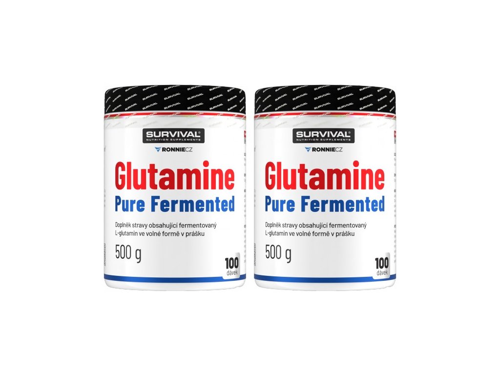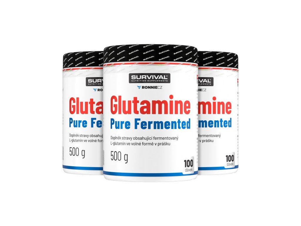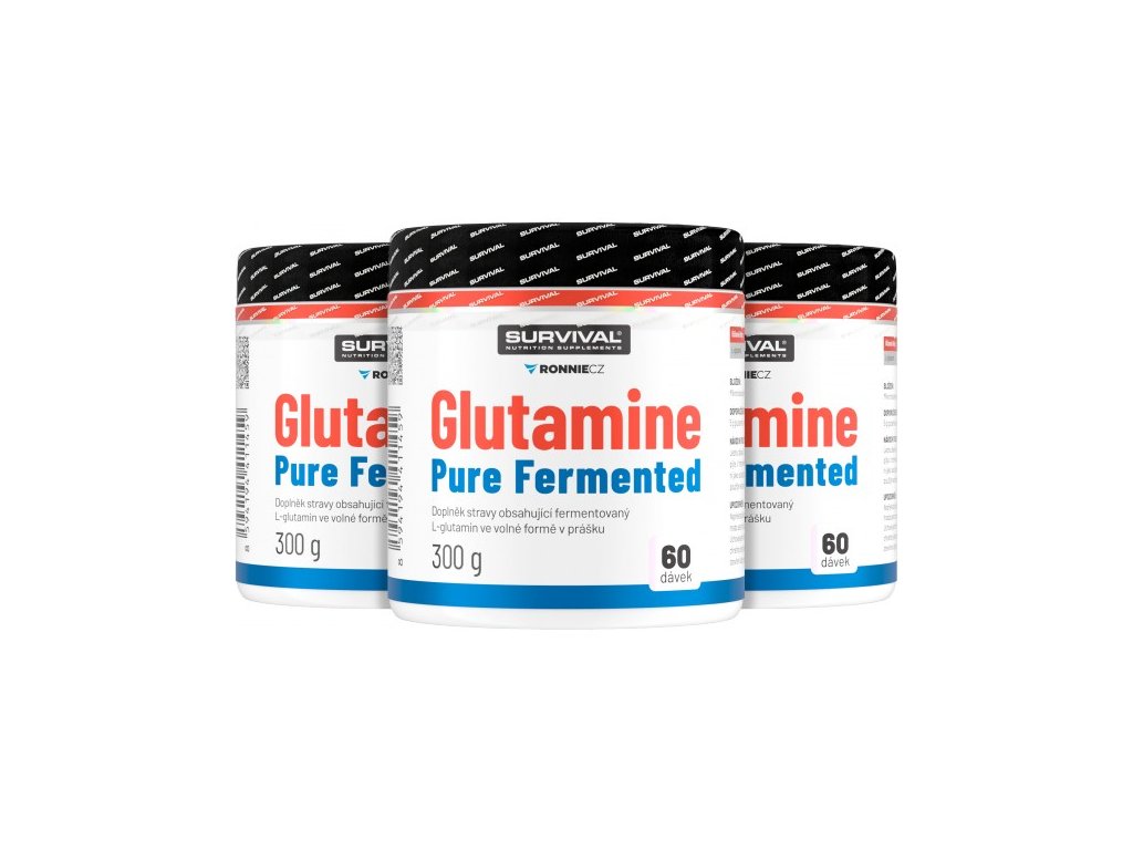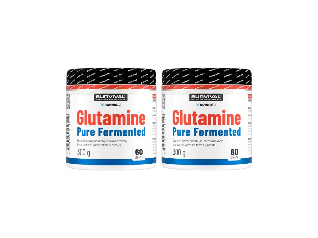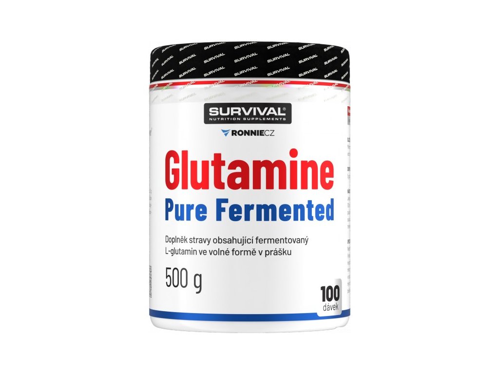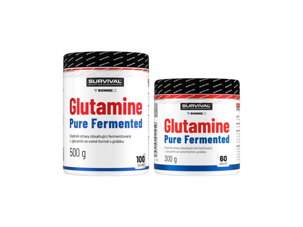 Glutamine Pure Fermented značky Survival nabízí 500gramové a/nebo 300gramové cenově velmi výhodné balení volné formy této semiesenciální aminokyseliny, kterou je zvlášť vhodné používat bezprostředně po tréninku a také večer před spaním. Lze používat v kombinaci s jinými doplňky sportovní výživy.
