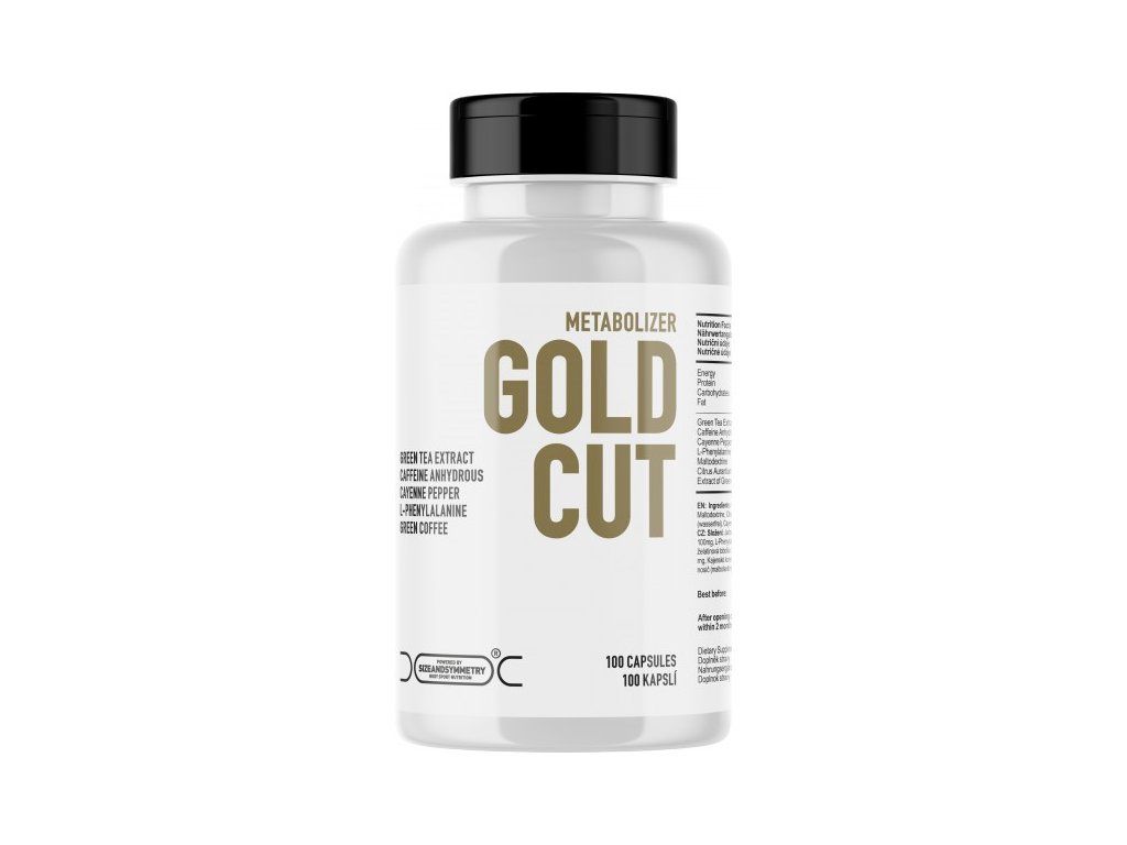 Gold Cut je extrémním spalovačem tuku s kombinací účinných látek pro podporu spalování tuku. Napomáhá využití tuku jako zdroje energie. Efektivně tak podporuje snižování množství tělesného tuku ve Vašem organismu a snížení tukových zásob. Obsahuje extrakt ze zeleného čaje, extrakt z hořkého pomeranče a černého pepře, který působí termogenně a podporuje využití tuku jako energetického zdroje. Kofein je jedním z nejúčinnějších stimulantů.