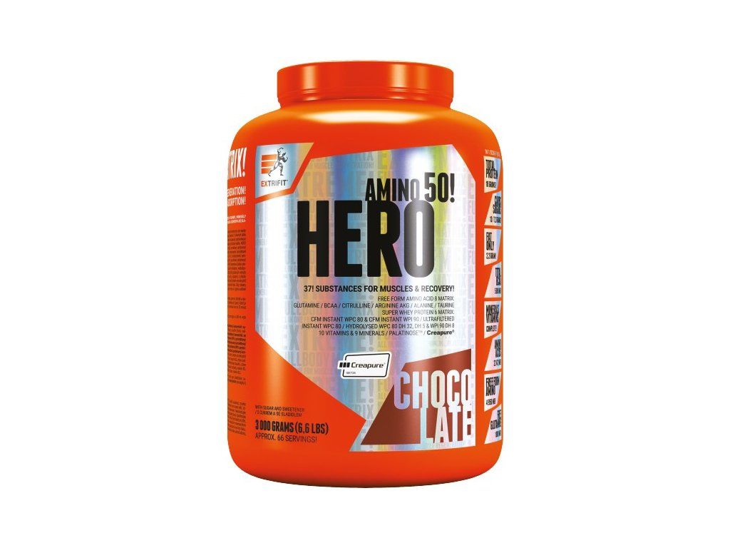 Díky obsahu proteinů přispívá Hero k růstu síly a svalové hmoty a k jejímu udržení v situacích, kdy je ohrožena katabolizací, jako je třeba velmi intenzivní či dlouhotrvající trénink. Hero je skvělou investicí! 37 všech účinných látek, nutných pro doplnění po tréninku, nenabízí žádný jiný produkt! Není třeba nakupovat jednotlivé potréninkové suplementy každý zvlášť!