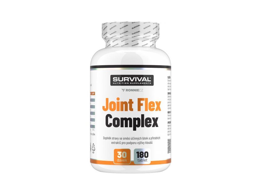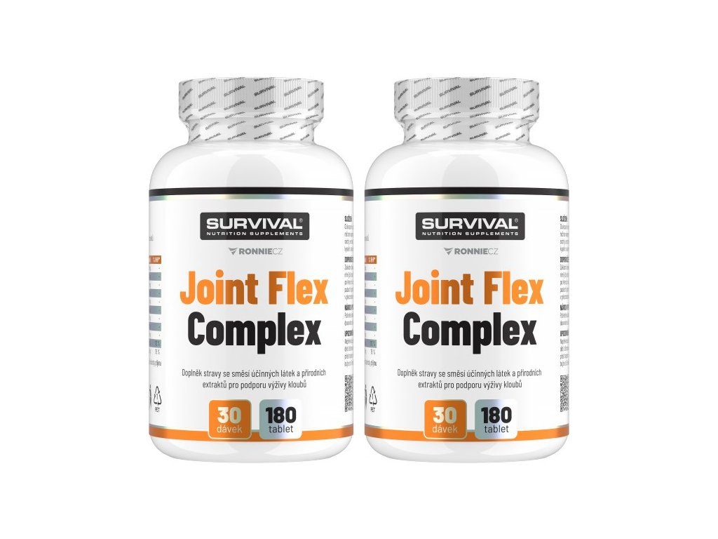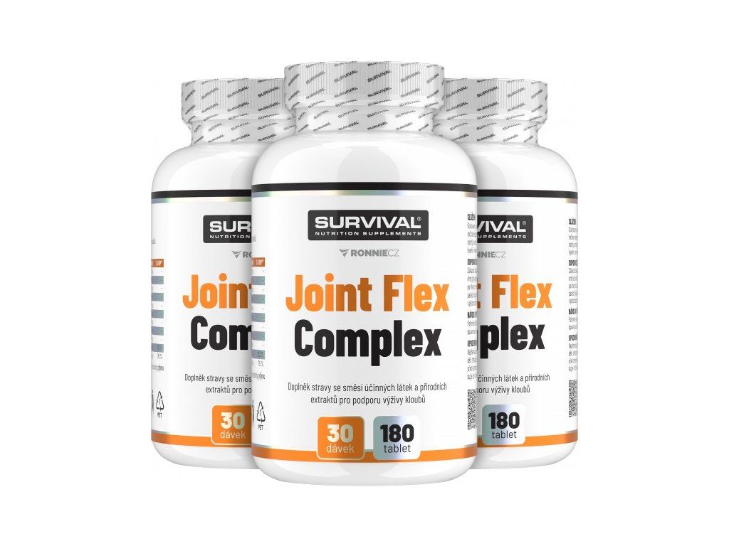 Joint Flex Complex představuje unikátní směs 11 látek, ověřených výzkumy, pro výraznou podporu kloubního aparátu, která - bez jakékoliv nadsázky či reklamního přehánění - nemá na současném evropském trhu obdoby. Receptura produktu Joint Flex Complex byla postavena na základě studií věnujících se problematice netraumatického poškození kloubů a pojivových tkání. Joint Flex Complex ocení tedy nejen zdraví sportovci v rámci prevence, ale také jedinci s již přítomnými zdravotními obtížemi. Joint Flex Complex představuje ideální suplement pro maximální podporu výživy kloubního aparátu v té nejvyšší kvalitě značky Survival. Porovnejte složení svého kloubního preparátu s Joint Flex Complex a sami se přesvědčte o jeho kvalitách!