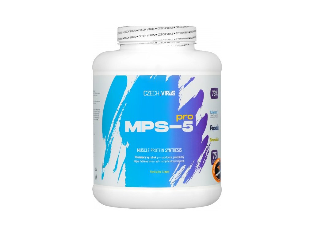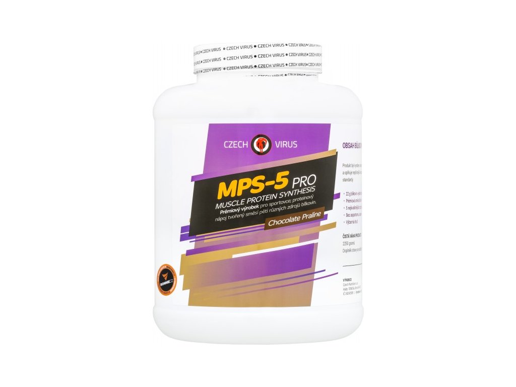 MPS-5 Pro je vysoce kvalitní vícesložkový protein složený z 5 různých zdrojů bílkovin. Největší část tvoří syrovátkový koncentrát zpracovaný metodou CFM (cross-flow microfiltration) a nativní mléčný protein (zdroj micelárního kaseinu). Zbytek tvoří CFM syrovátkový izolát, hydrolyzovaný (naštěpený) syrovátkový koncentrát a vaječný albumin. Složení reflektuje aktuální studie pro nejideálnější složení proteinu pro maximální anabolismus. To vše navíc doplňují enzymy Tolerase™ L, papain a bromelain pro maximální využití bílkoviny a štěpení laktózy.