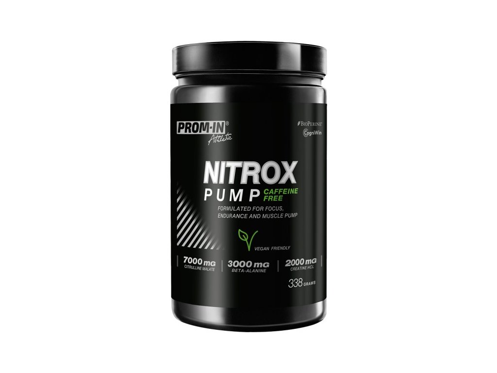 Nitrox Pump Caffeine Free je pre-workout pro sportovce, kteří dokážou v krátkém čase vytvořit brutální intenzitu a nepotřebují kofein ani žádné stimulanty. Stojí na synergii citrulinu, AAKG, beta-alaninu a kreatinu HCl, které vytvářejí podmínky pro nekompromisně tvrdé série. Neurofokus komplex (tyrosin, theanin, CDP-cholin) podporuje pozornost a kontrolované řízení intenzity — s klidným nástupem bez stimulantů. Nitrox Pump Caffeine Free je navržený pro ty, kteří nepotřebují stimulovat. Pro sportovce, kteří trénují tvrdě, rychle a naplno — a chtějí produkt stejně poctivý, jako jsou oni sami.