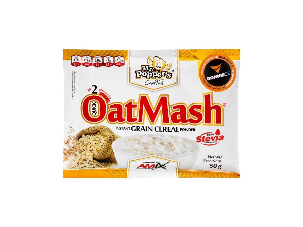 Vynikající rozpustná extrudovaná ovesná mouka speciálně navržená pro rychlou přípravu kaše nebo ovesného nápoje, řada Mr. Popper´s. Tento skvěle chutnající produkt je ideálním zdrojem přírodní ovesné vlákniny. Ovesné vločky jsou oblíbeným zdrojem výživy mnoha lidí, ať již provozují fyzickou aktivitu, či nikoli. OatMash® může být konzumována kdykoliv během dne, připravená za tepla i za studena. Můžete ji také přidávat do svých receptů, jako jsou lívance, palačinky, koláče, pudinky. Neochucená varianta výborně poslouží ke snadnému zahušťování polévek či omáček bez nutnosti převaření. [zbozi:8232,9163,8584]