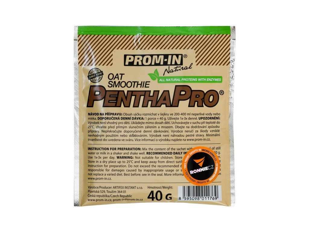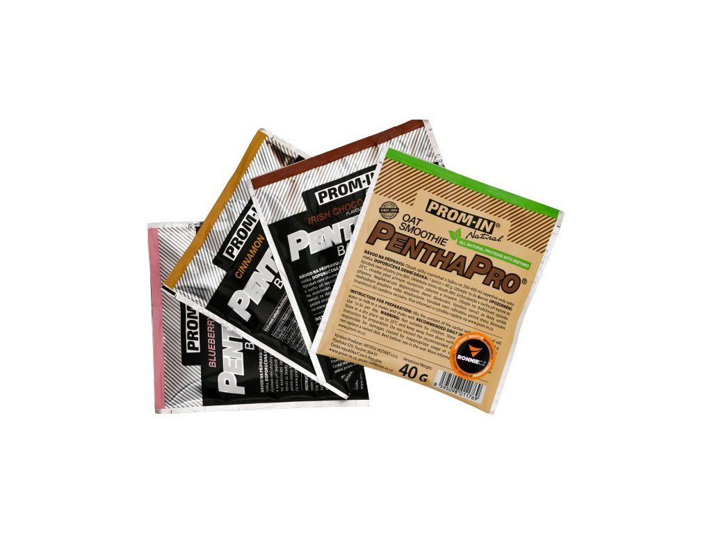 Pentha Pro je proteinový nápoj tvořený směsí pěti různých zdrojů bílkovin - syrovátkový proteinový koncentrát zpracovaný metodou CFM, micelární kasein, sušený vaječný albumin, syrovátkový proteinový izolát zpracovaný metodou CFM, enzymatickou hydrolýzou upravený syrovátkový protein. Příchuť natural (ovesné smoothie) a další příchutě. Proteiny podporují nárůst svalové hmoty.