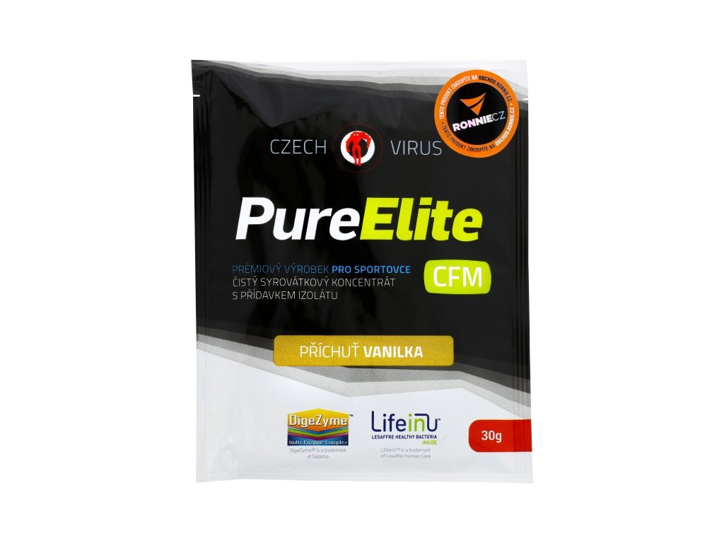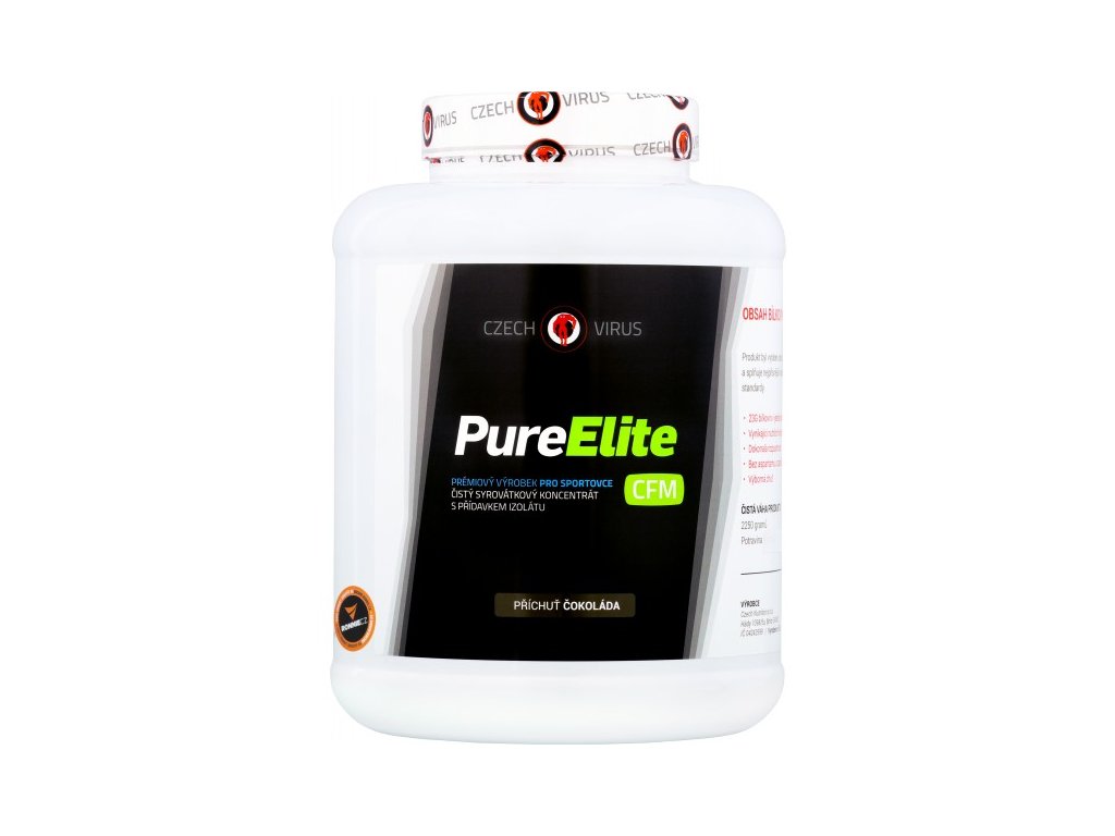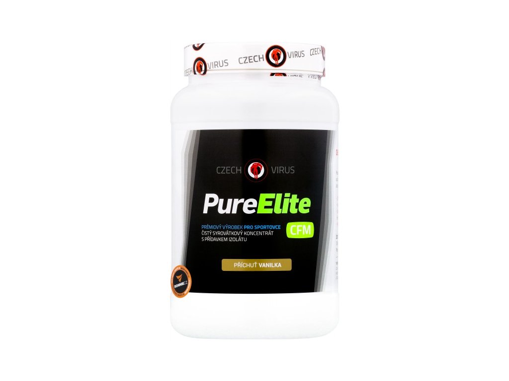 CFM syrovátkový koncentrát, CFM syrovátkový izolát, vysoký obsah BCAA a L-glutaminu. Pure Elite CFM je vysoce kvalitní 100% syrovátkový protein složený z CFM koncentrátu a CFM izolátu. CFM technologie zpracování syrovátky zajištuje nejvyšší kvalitu zpracování bez chemie při zachování maximálního množství bioaktivních frakcí suroviny. 77% obsah bílkovin, vysoký obsah L-glutaminu a BCAA v dávce je zárukou ideální výživy pro namáhané svalstvo. Obohaceno o trávicí enzymy a synbiotika s použitím pouze přírodních aromat.
