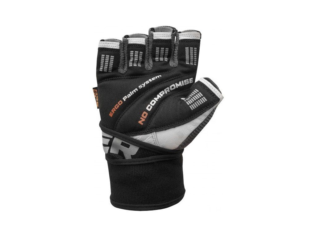 No Compromise jsou vysoce kvalitní rukavice spojené s výztuží zápěstí, která Vám dodá jistotu u všech silových cviků, kde je pevný úchop základem pro dokonalou sérii. Určené k intenzivnímu cvičení. Vrchní část rukavice je vyrobena z prvotřídní, trvanlivé kůže, prsty rukavice mají malé otvory a ohebnou vložku pro optimální regulaci vzduchu. Anatomicky střižená, dvouvrstvá kožená dlaň s tvarováním Ergo Palm System. Silná, lemovaná bavlněná omotávka zpevňující oblast zápěstí a zajišťující perfektní stabilitu ruky - na konci suchý zip.