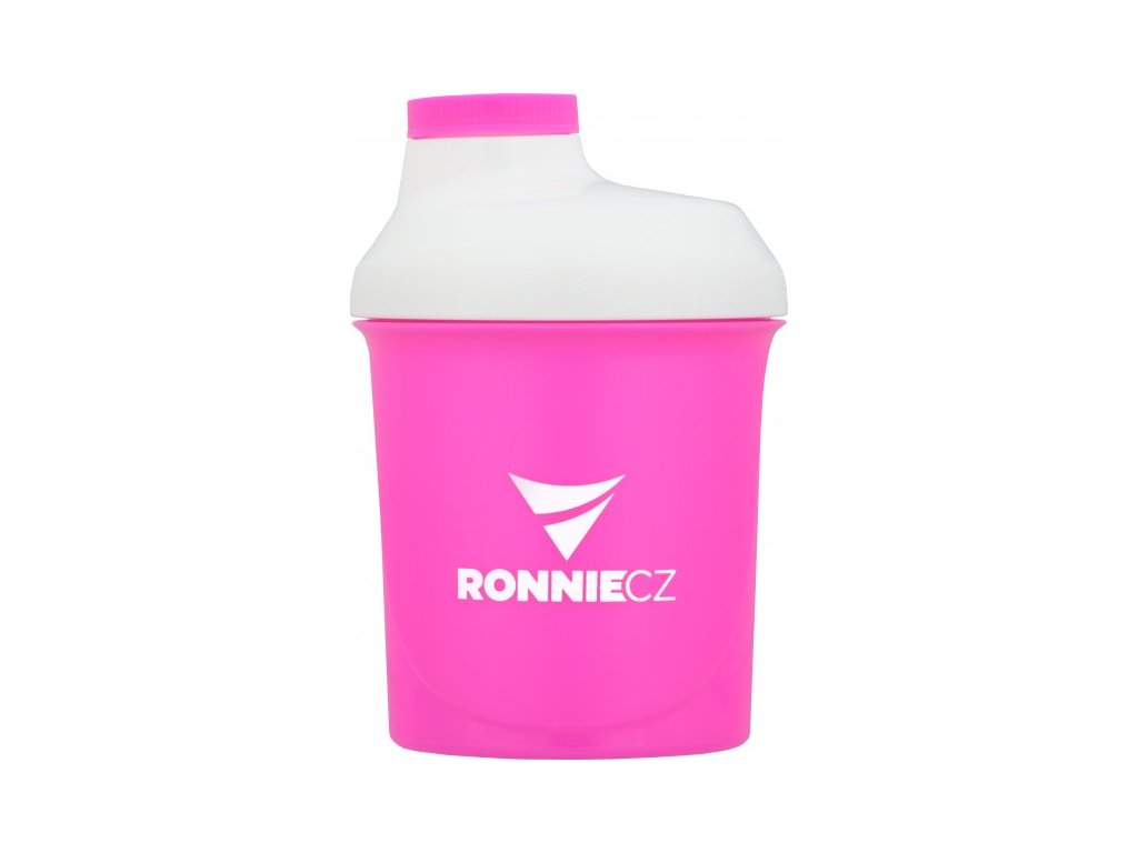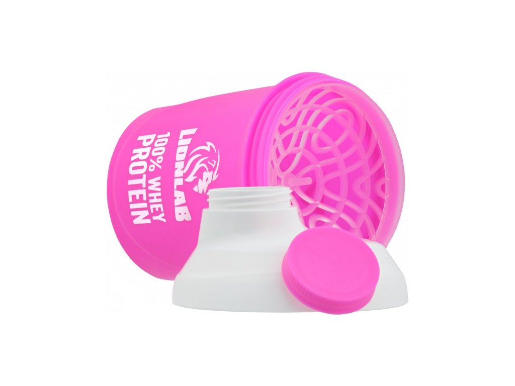 Šejkr Lionlab a Ronnie.cz má růžovou barvu s bílým uzávěrem a růžovým malým šroubovacím víčkem. Na šejkru je na jedné straně logo Lionlab a nápis 100% Whey Protein, na druhé straně je logo Ronnie.cz, oboje v bílém provedení. Po straně jsou rysky v ml pro odměření. Objem šejkru je 300 ml. Šejkr obsahuje mřížku pro lepší rozmíchání nápoje.
