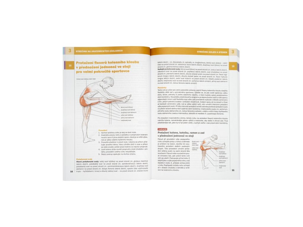 Bestseller, který Vám pomůže ke zvýšení ohebnosti, rozvoji svalové síly, snížení svalové bolestivosti, a tím ke zlepšení výkonu ve všech pohybových aktivitách. Autoři vybrali a podle jednotlivých svalových skupin uspořádali 83 protahovacích cviků od chodidel až po krk. Pro dokonalé pochopení každý cvik doplnili anatomickými ilustracemi znázorňujícími svaly, které provádějí pohyb, spolu s okolními strukturami, jako jsou klouby, vazy a šlachy. Všechny svaly jsou popsány česky a pro lepší orientaci a srozumitelnost i latinsky. Publikace tak velmi názorně přináší nejen sportovcům, trenérům i rehabilitačním pracovníkům, ale také všem, kdo tráví delší dobu vsedě nebo vestoje, informace o provádění cviku, jeho účincích, o bezpečnosti provedení a možných variacích podle aktuálního stavu a schopností jedince, a v neposlední řadě popis toho, jak může změna polohy těla změnit zacílení cviku a jeho efektivitu. [zbozi:5606,9223,9508]