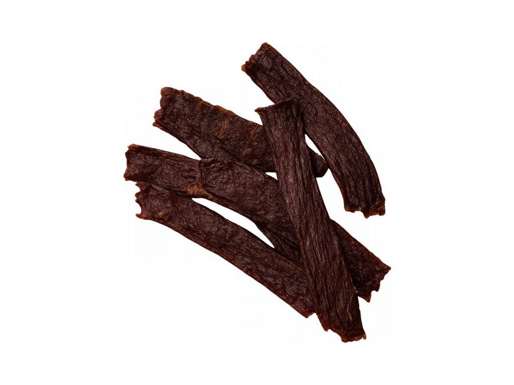 Ručně vyráběné z kvalitního hovězího masa. Lehký a chutný snack plný kvalitního masa, vyrobený bez lepku, barviv či konzervantů. Hovězí maso potěší všechny, kdo hledají čistou chuť a proteinovou svačinu na cesty. Na 100 g výrobku bylo použito 220 g syrového hovězího masa. Maso z farmy, Čečkovice, Bor u Tachova.