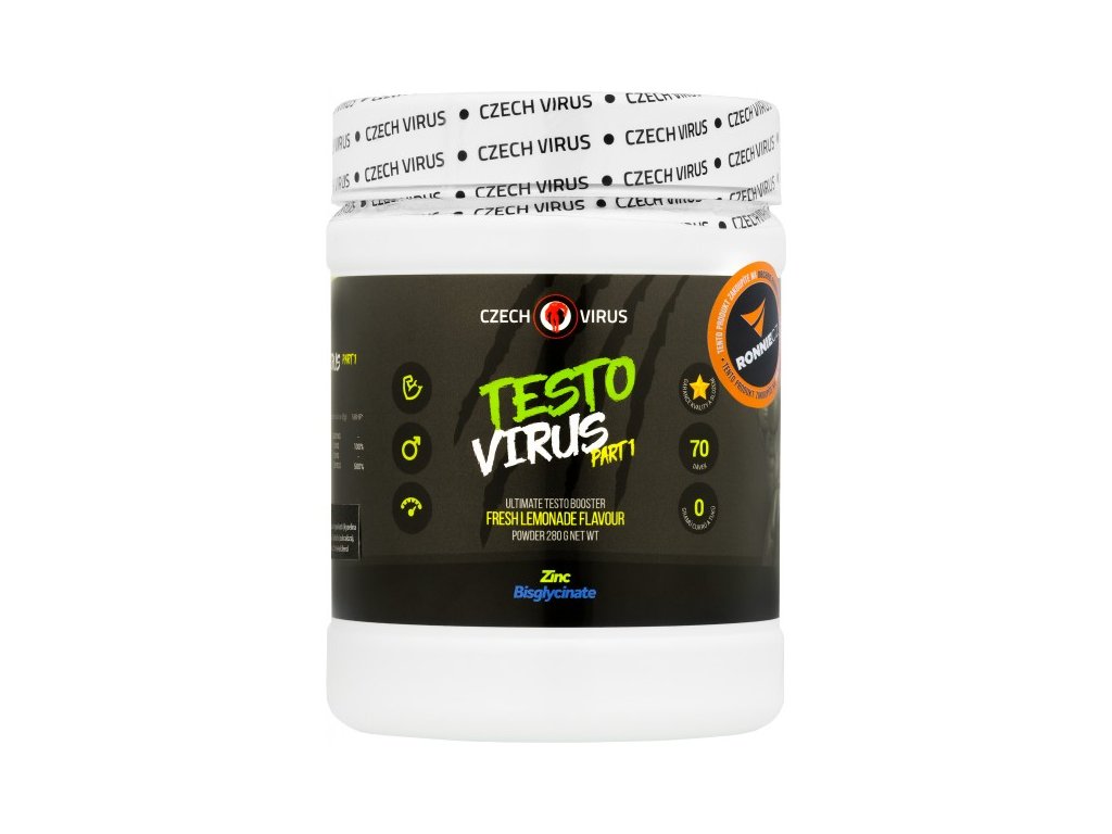 Produkt Testo Virus Part 1 nabízí komplexní složení pro optimalizaci hladiny testosteronu. Složení vytvořeno na základě studií. Přispívá k normální plodnosti a reprodukci a k udržení normální hladiny testosteronu v krvi. Produkt kombinuje extrémní množství kyseliny D-asparagové se zinkem ve formě bisglycinátu (chelát), bóru a vitamínu D3 (tzv. prohormon). Optimalizace testosteronu by měla být jednou z priorit pro tvrdě trénující jedince, jelikož se od ní odvíjí nepřeberné množství akcí v našem těle. Doplněním tohoto produktu je Testo Virus Part 2.