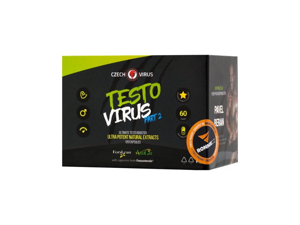 Testo Virus Part 2 vznikl jako druhá část k Testo Virus Part 1 (kyselina asparagová, bór, zinek a vitamín D3), aby vznikla ultimátní kombinace toho dost možná nejlepšího, co můžete na našem trhu legálně sehnat. S ohledem na použité látky je Part 1 vhodný hlavně do PCT (post cycle therapy) a na krátkodobější boost testosteronu (tedy je vhodné produkt cyklovat), Part 2 slouží pro dlouhodobou a účinnou optimalizaci hormonálního systému. Part 2 obsahuje 7 aktivních extraktů z bylin v originální kombinaci s funkčním množstvím. Formulím založeným pouze na tribulu již odzvonilo, je čas pro novou generaci produktů, které mají reálný vliv na optimalizaci testosteronu. Doplněk stravy vhodný pro sportovce. Komplexní směs rostlinných extraktů pro optimalizaci testosteronu. ForsLean a Fenusterols je registrovaná ochranná známka firmy Sabinsa. AstraGin je registrovaná ochranná známka firmy NuLiv Science USA Inc.