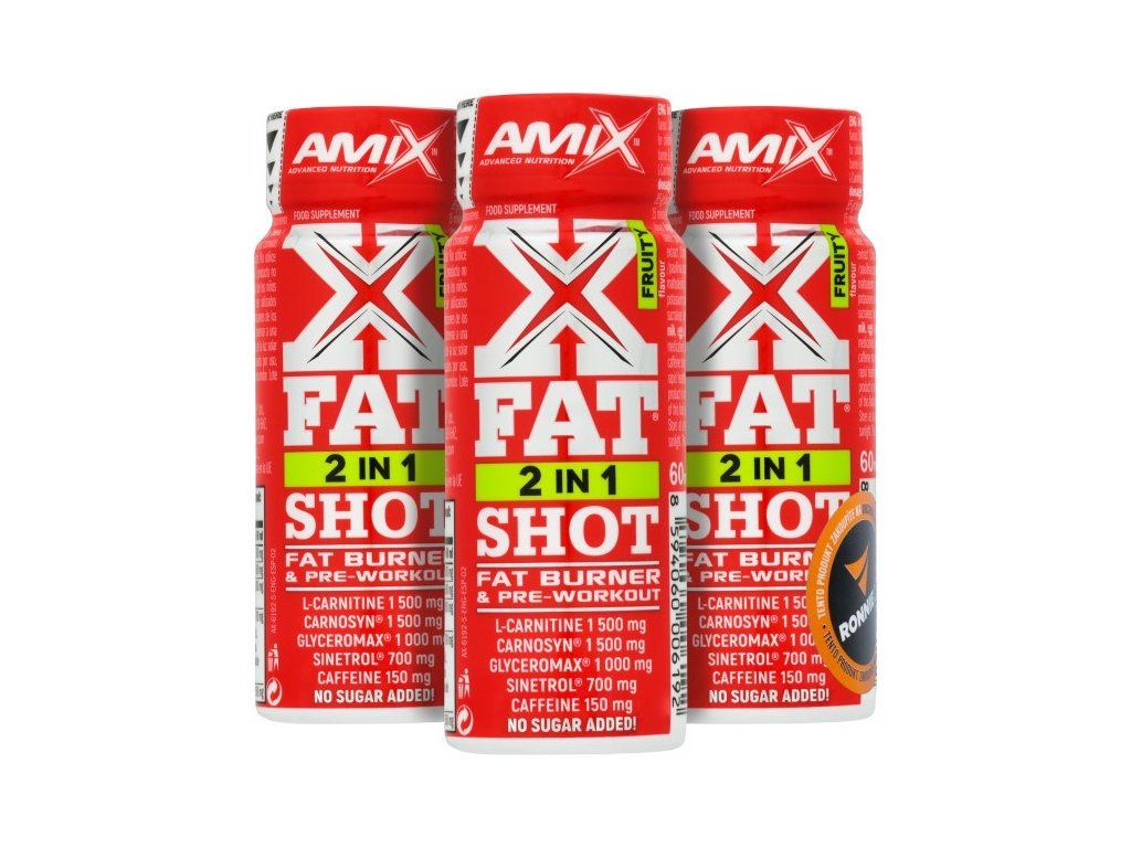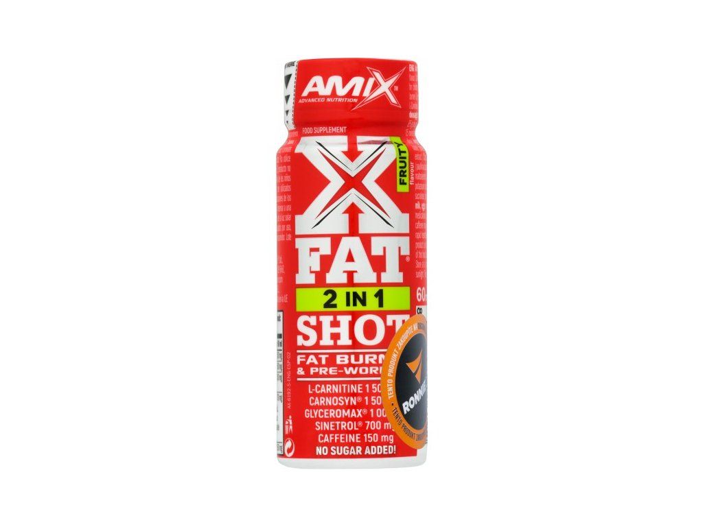 XFat 2 in1 Shot je vynikající spalovač tuku a předtréninkový doplněk stravy, který obsahuje glycerol GlyceroMax, L-karnitin, CarnoSyn beta alanin, kofein a Sinetrol - pomerančové extrakty, grepový extrakt a extrakt z guarany. Bez přidaného cukru, rychlá absorpce.