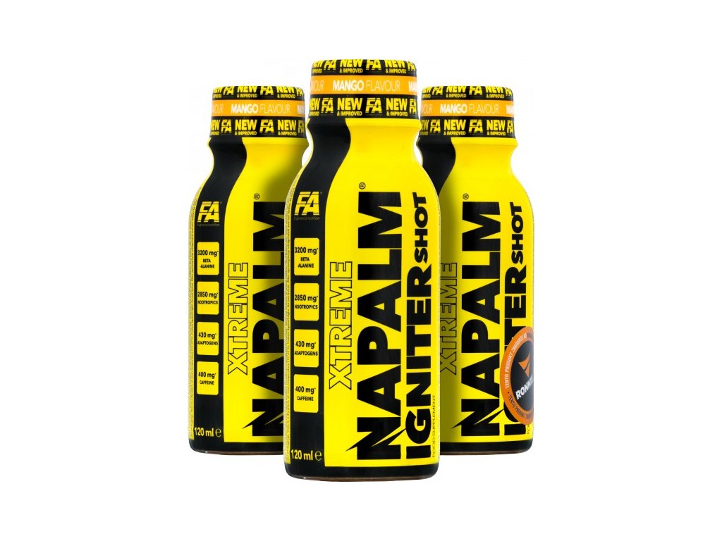 Legendární předtréninková formule. FA Xtreme Napalm Igniter Shot je obohacen o řadu cenných složek (např. GABA, výtažky z rostlinných adaptogenů, vitamíny skupiny B, L-theanin), které poskytují další podporu během intenzivního tréninku. Díky praktické formě ampulky se přípravek snadno a rychle používá a malá velikost balení nečiní žádné problémy při jeho přenášení na trénink. Optimálně zvolené poměry složek zaručují bezpečný a pevný účinek - výrobek se doporučuje amatérům i profesionálům, kteří hledají nekompromisní řešení.